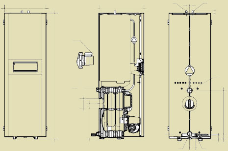 • Heating Unit with gas-oil burner for hot water central heating and stored Domestic Hot Water production and all components needed for installation and maintenance.