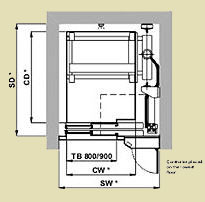 - Only 1100 mm min. pit depth for 630 Kg, 1400 mm for 1000 Kg