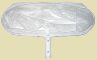 Leaf skimmer with polyester net put into a polypropylene frame. the wide rim and the extra deep net easily capture the leaves and debris from the bottom of the pool. White frame, white net.